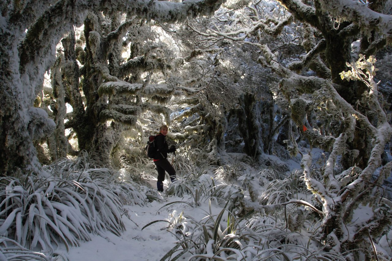 Kapakapanui Track offers rewards through all seasons. In summer with an early (6.30am) start you can get the quick tramp fix and be on top by 9.00am and back by midday. In spring and autumn, early starts bring crisp conditions and often a special mystic feel as the morning mist or filtered rays of sunlight accentuate both the ground cover and twisted trees in the tortured forest.