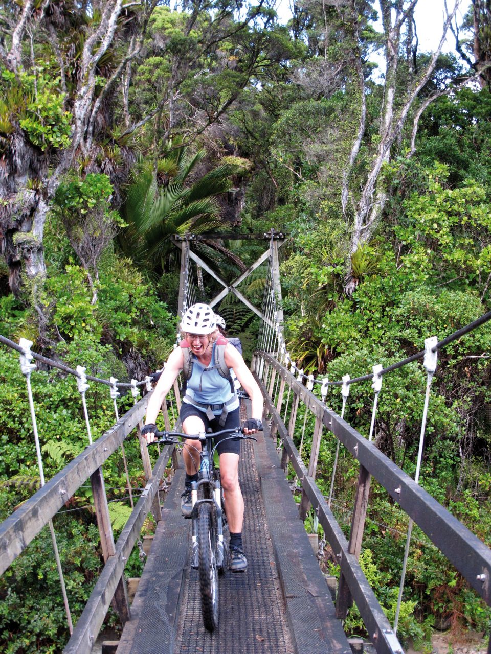 There has been a long history of cyclists riding the Heaphy Track with locals and cycle tourists using it as a fun way of joining the dots between Golden Bay and the West Coast. When mountain bikes first arrived in New Zealand it was only natural that they would gravitate to the Heaphy Track. In late 1985, a group of us were returning from a Heaphy caving trip and we spotted a couple of Canadian mountain bikers winging their way down the coastal section of the track, and they were having fun. Good MTBs were hard to come by in those days, but we all managed to purchase some and the Heaphy Track became one of our early adventure rides.