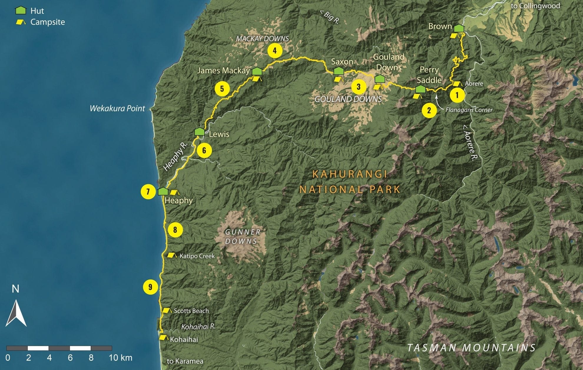 Then another Rubicon is crossed after James Mackay Hut and the luxuriance of a West Coast rainforest enters the mix. The long descent towards Lewis Hut is accompanied by a thickening of the vegetation, until once at the valley floor a surprise slice of limestone geology nurtures a jungle-like forest of nikau palms. At the mouth of the Heaphy River, a site of Maori habitation, the wild