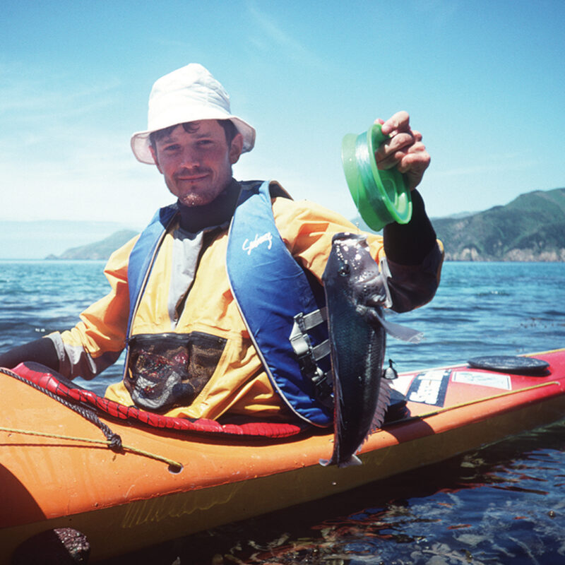From Wellington, they kayaked across Cook Strait. Richard wrote in Arahura: Pathway to the setting sun: ‘At first it was good to get into the paddling routine, but it looked as if it would take an age to reach the South Island, which was just a blue smudge on the horizon.’