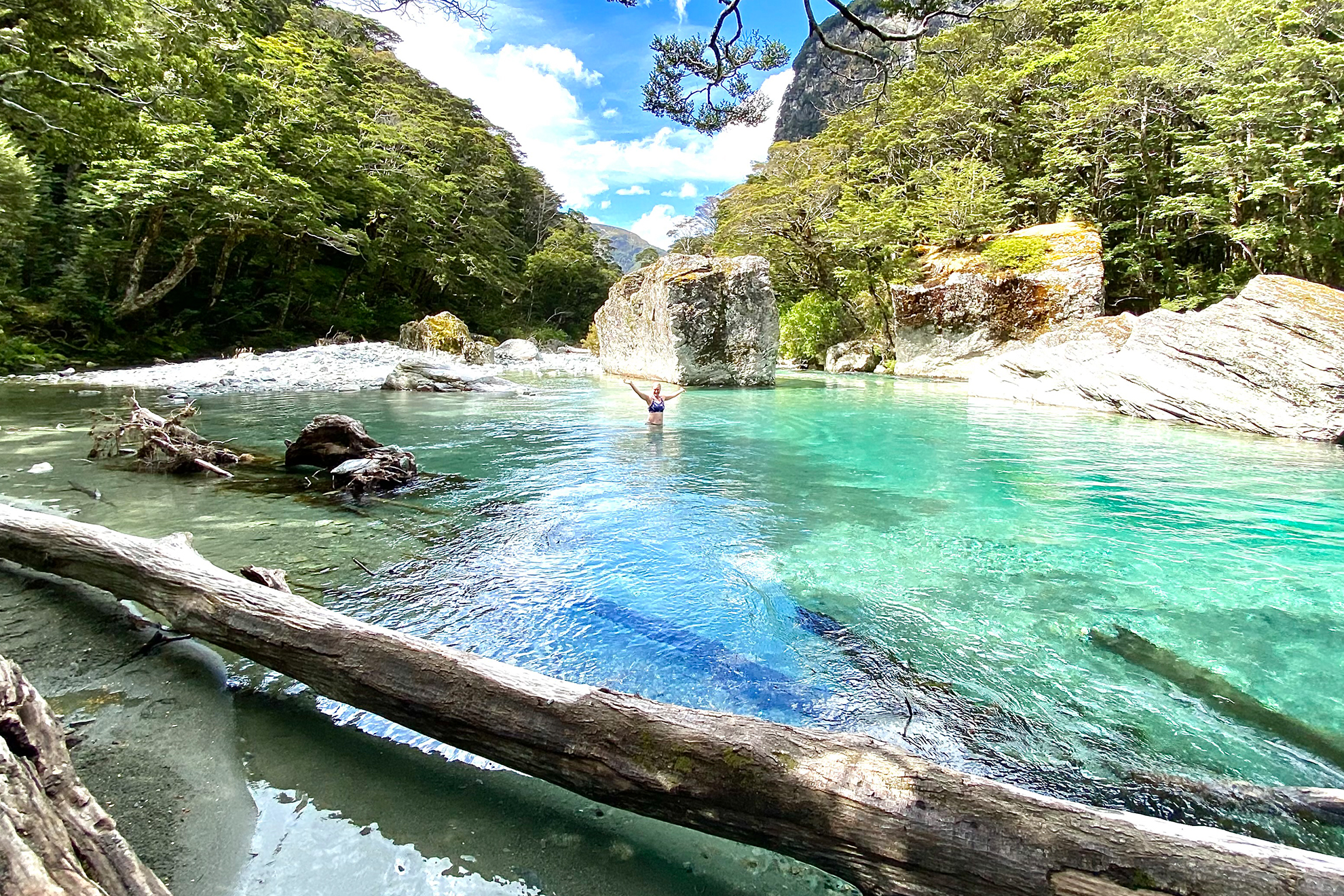 Right on the doorstep of Moturau Hut and with the Kepler Mountains providing a stunning backdrop, Lake Manapōuri is perfect for a dip after a hard day’s hiking.