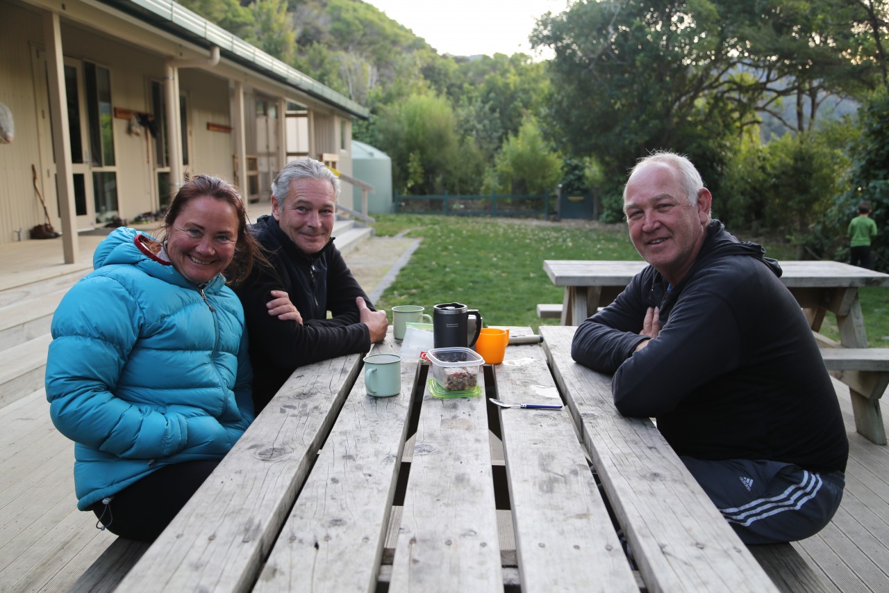 Hear stories from trampers, kayakers and day-trippers at the beachfront Anchorage Hut in Abel Tasman National Park.