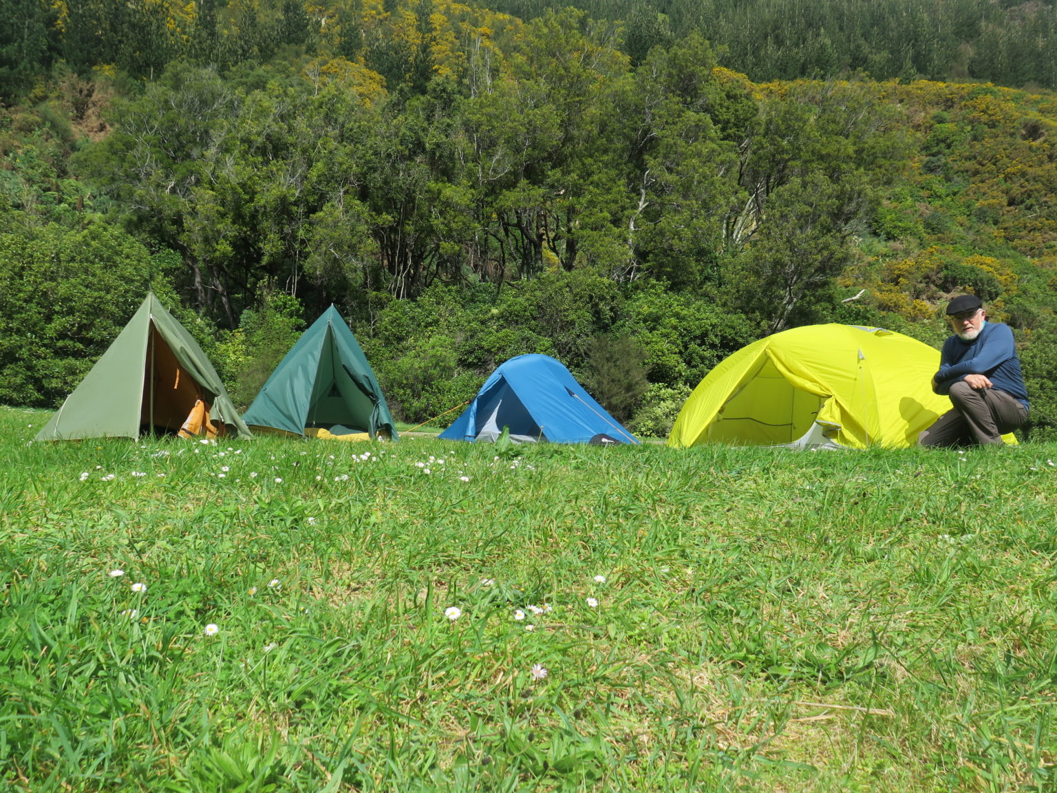 On a club trip around Mt Taranaki, we arrived after a day’s persistent rain at Holly Hut to find it almost full. While my companions decided who would share the last bunks and floor space, I set up camp before retreating to the hut for dinner. Two of us retired to the tent for a night disturbed by the staccato patter of rain on nylon, and sporadic gusts that vigorously shook the tent. Next morning when our trip leader unzipped the front flap carrying mugs of steaming tea, he seemed surprised to find us snug and dry.