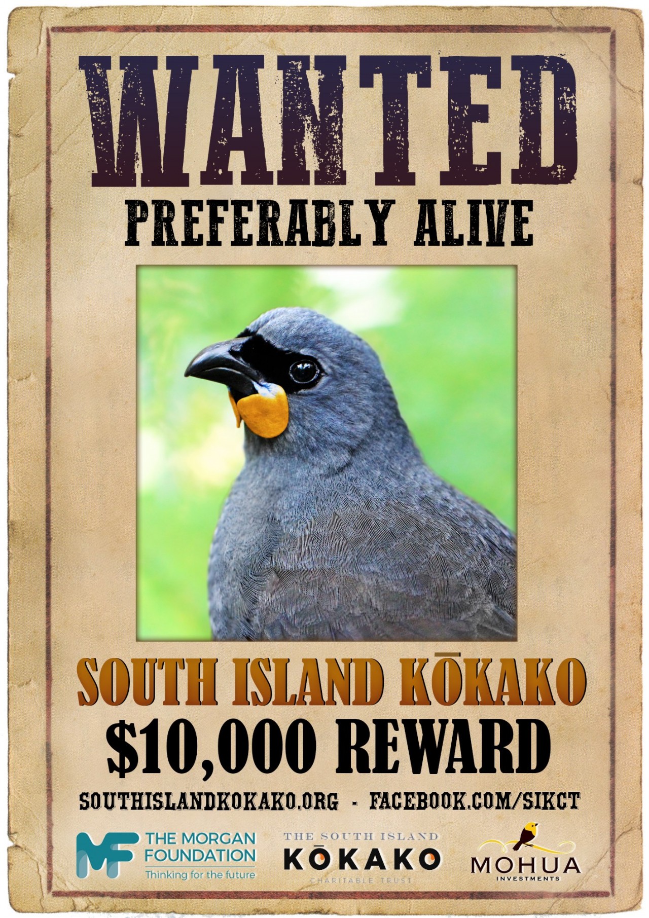 The Morgan Foundation has lent its support to the search for the South Island kōkako by matching the $5000 reward offered in January for definitive proof that the South Island kōkako is still alive.