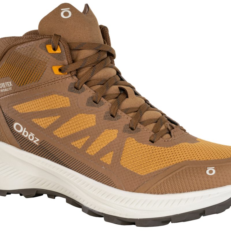 A long-distance hiking shoe blending lightweight with durability. It has a mesh upper with welded protective TPU overlays, a Gore-Tex lining, a rolled comfort-collar that locks down fit, mid-to-forefoot rock plate for stability and protection, an underfoot gaiter channel and ACTEnergy midsole for additional cushioning and responsiveness. 726g (m), 630g (w). www.obozfootwear.com