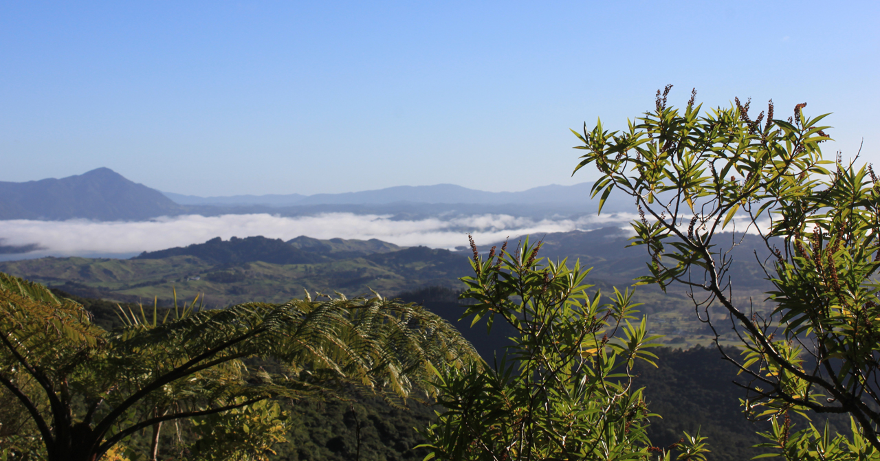 The following morning brought with it a blue sky and warm sun. Ilse and John headed back the way they had come and I headed out to Mountain Road via the Six Foot Track. The walk out, about 90 minutes, was a combination of mud, water features and fantastic views towards Hokianga Harbour. It was a pleasant traverse on an easy gradient with the sound of the river disappearing down into the valley below.