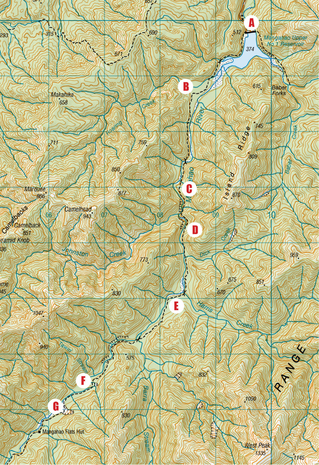 Consider a trip to Mangahao Flats Hut in Tararua Forest Park. The map allows you to imagine what you will see as you travel along the track. While you are walking the track, match the picture of what you see to the features you see on the map.