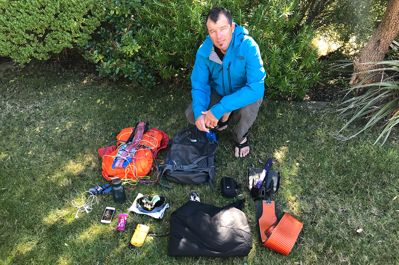 Mark Sedon is an IFMGA mountain guide living in Hawea. When he’s not guiding or organising the New Zealand Mountain Film and Book Festival, he can be found kite-skiing on the Pisa Range. “When I go kiting, I hope to be out for an hour or two and travel 30-50km,” he says. “But I need to be prepared to be out for most of the night if the wind stops, or goes ballistic – or I break something.