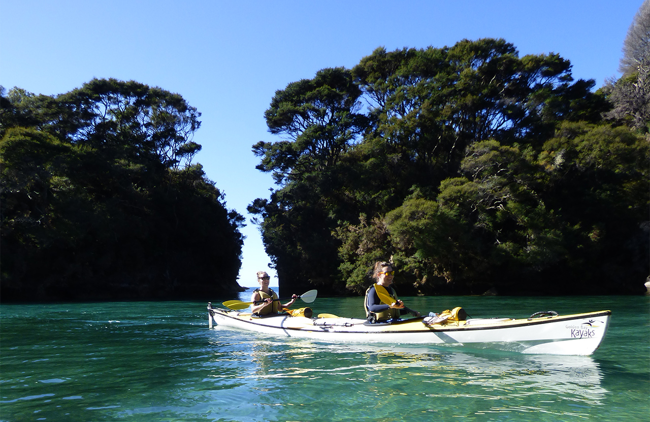 Golden Bay Kayaks lent two of its boats to us. The company allows freedom kayakers to paddle the whole length of the park, so long as guides are happy you know what you’re doing after a thorough briefing.
