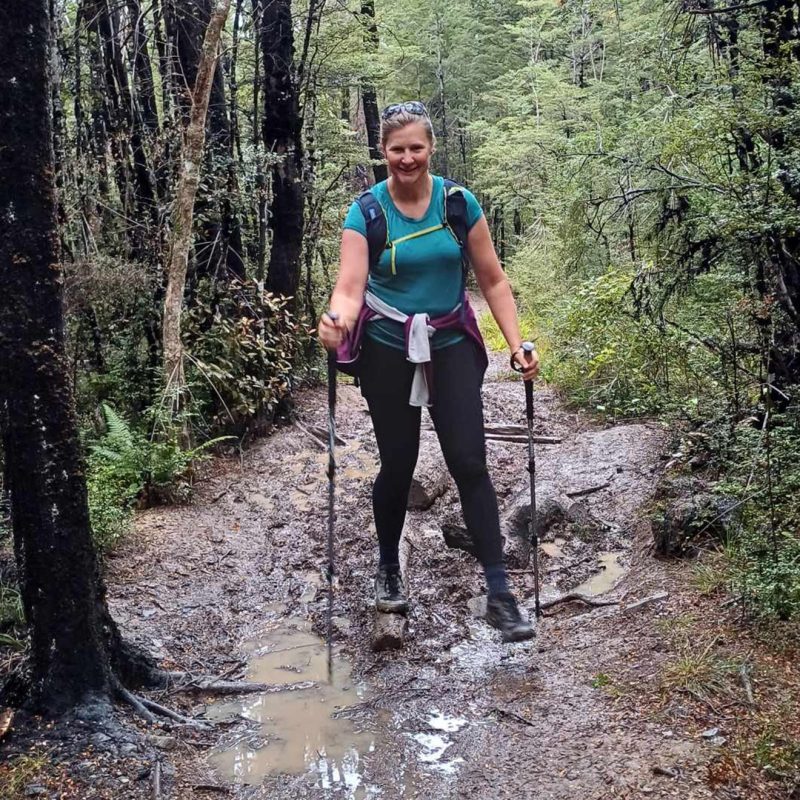 Jenna Reynolds gave her legs a rest on the Routeburn Track.