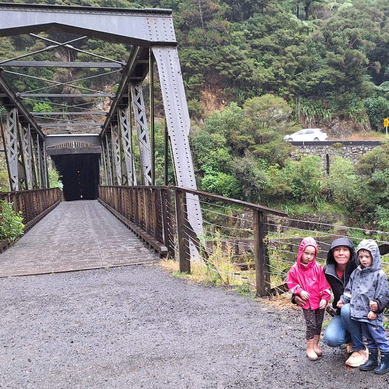 Winner: Sue Managh took her twin grandchildren tramping in the rain at Karangahake Gorge.
