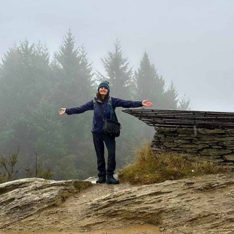 Mandy Smith had a soggy walk to the Basket of Dreams sculpture in Queenstown.