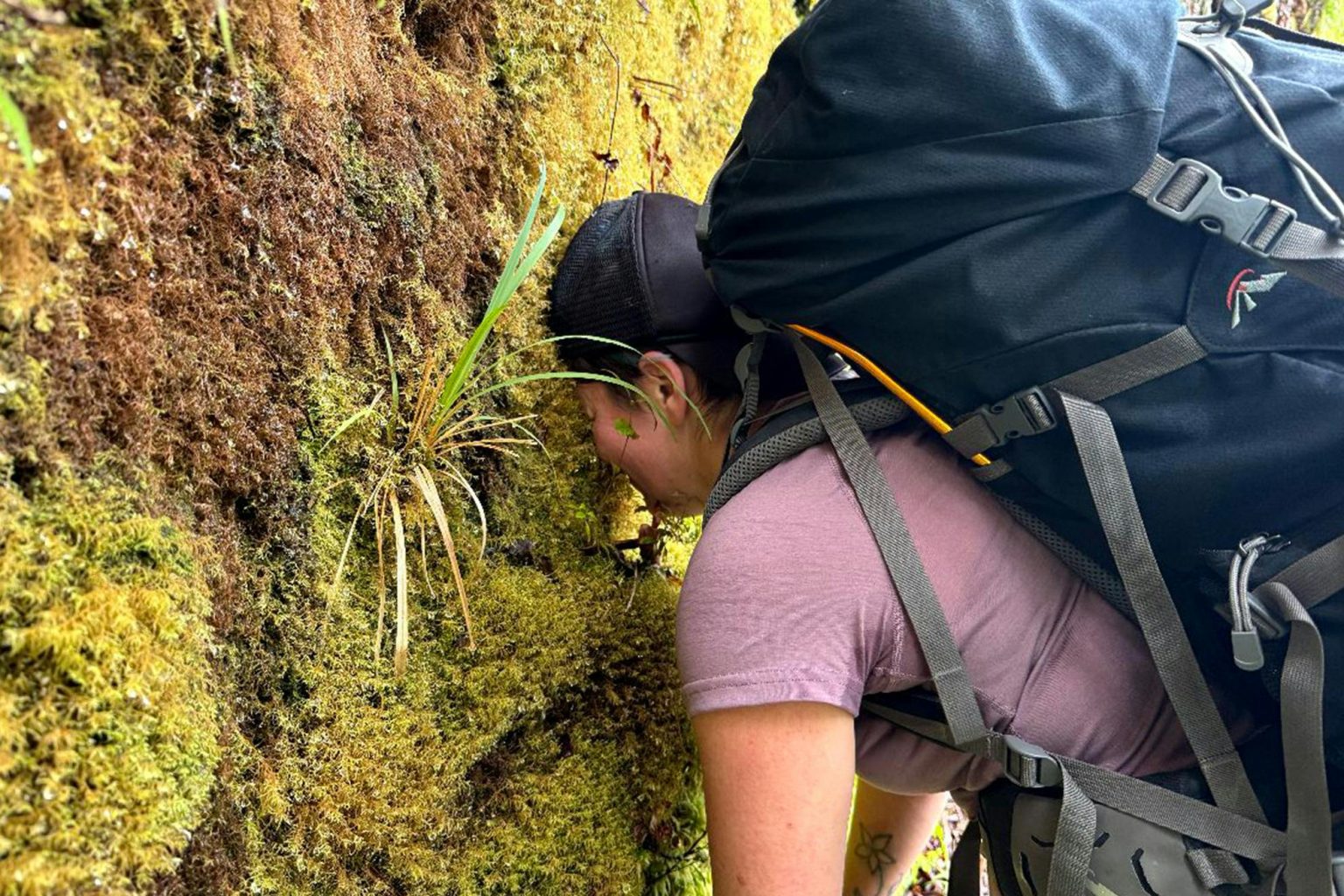 Further Faster $100 voucher winner: Alisha Cross interpreted the task on a much smaller scale when she ‘hugged’ some moss on the Heaphy Track. “It was lush – I would recommend it 10 out of 10,” she says.