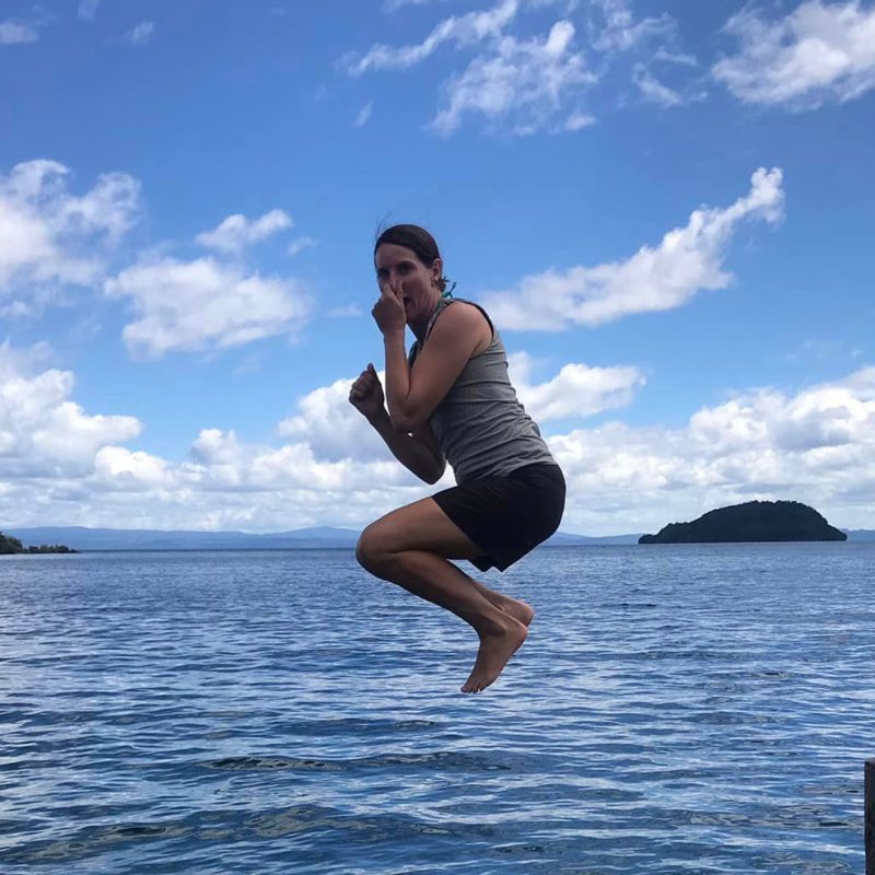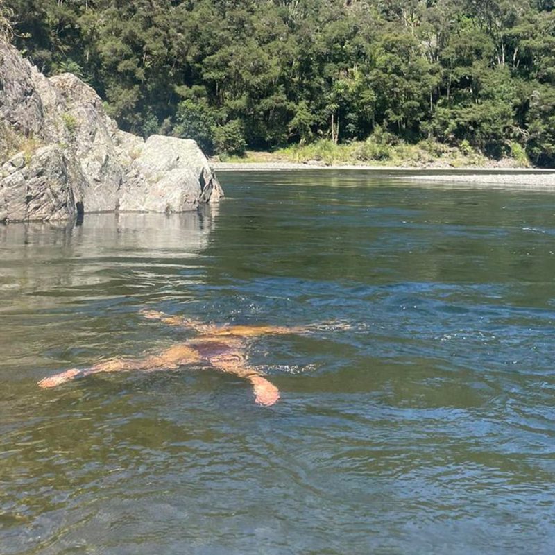 Heidi Stiefel dived into the Mohaka River after a hot hike to Te Puia Lodge.