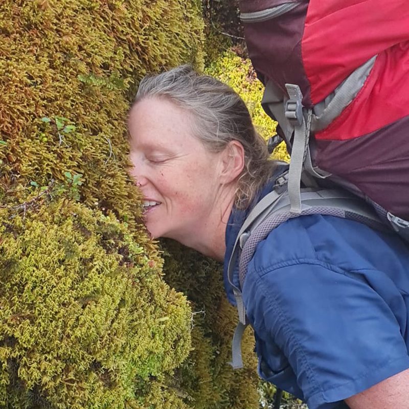 Lissy Bell found some moist moss to cool her brow on the Klondyke Spur Track.