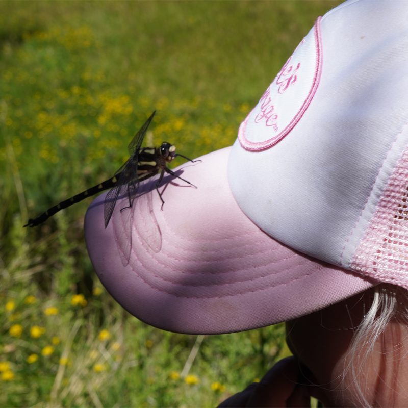 A dragonfly rested on Kellie James’ daughter’s cap.