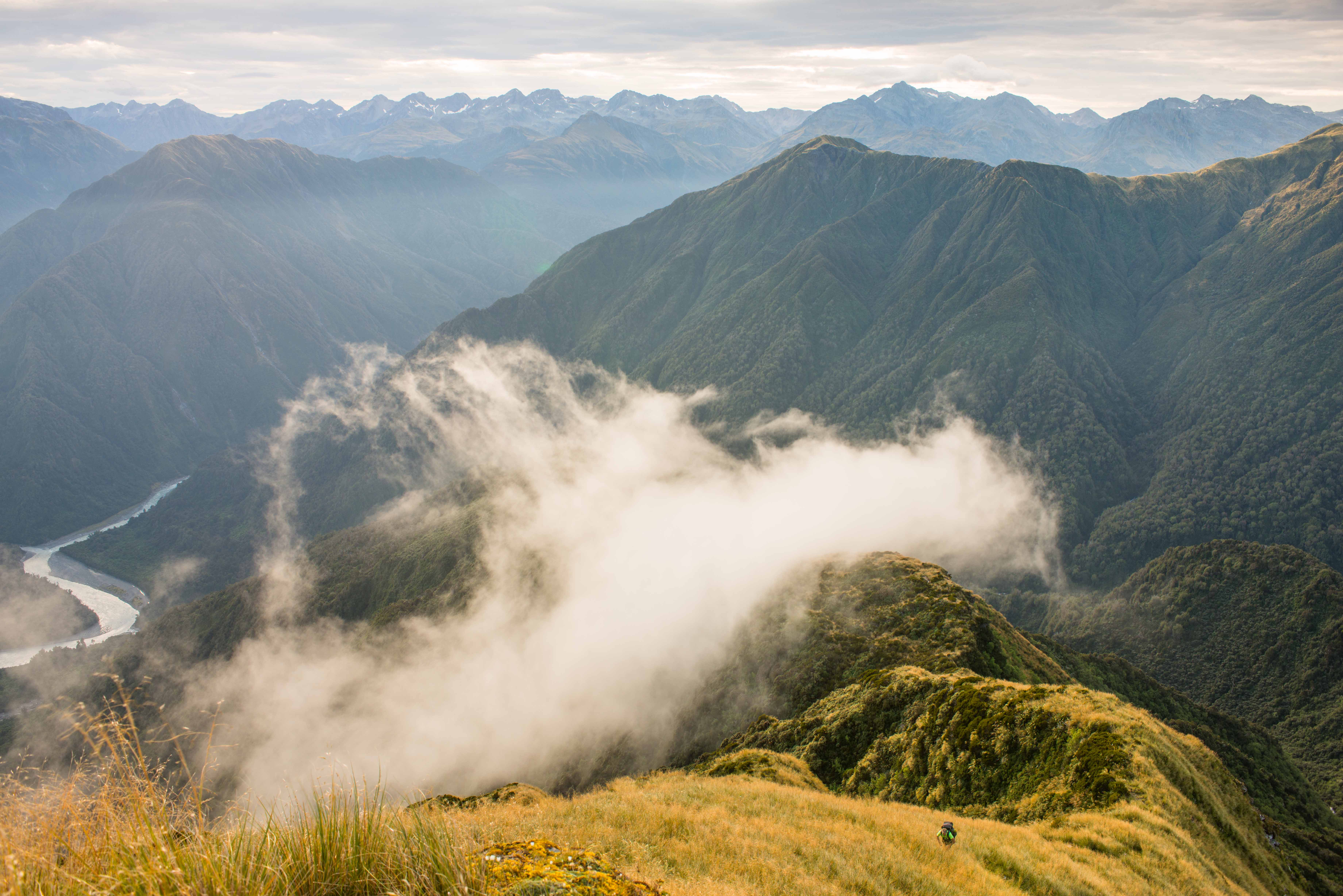 It’s a long haul onto the tops from Rapid Creek Hut in the lower Hokitika Valley. More so when the route taken is by the aptly named Miserable Ridge. The 1200m climb is stretched out over 4km of ridgeline. And it’s steep.
