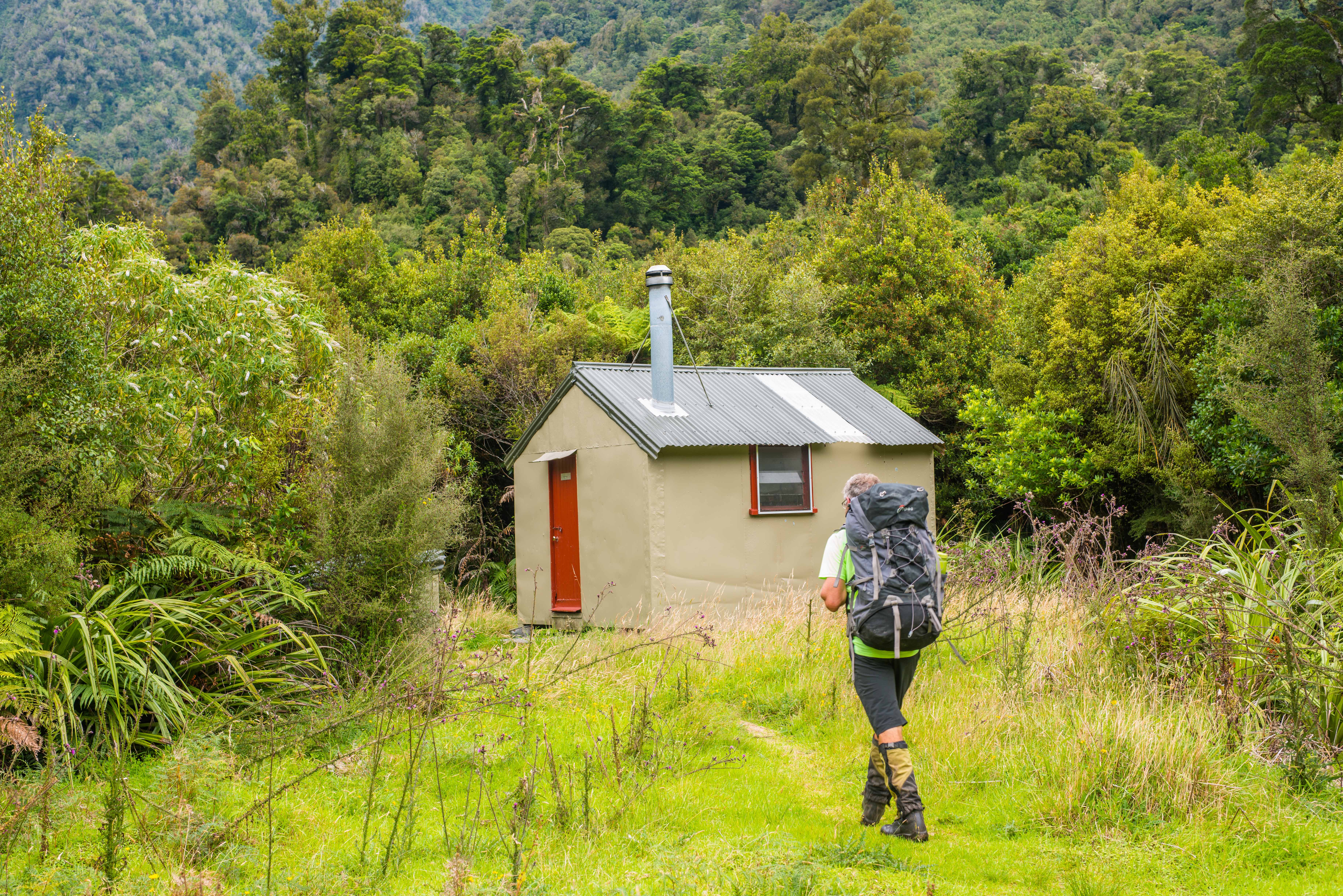 Out of the ute, we began the trudge alongside the boisterous and intimidating flow of the Hokitika River, first over farm flats then riverbed, then the old greasy pack track up to the cableway and Rapid Creek Hut.