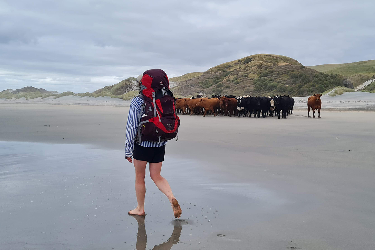 A hut book entry tickled us: two trampers warned about some ‘murderous cows’. Apparently, the cows were so fearsome that the two had to dash into the dunes to escape them.