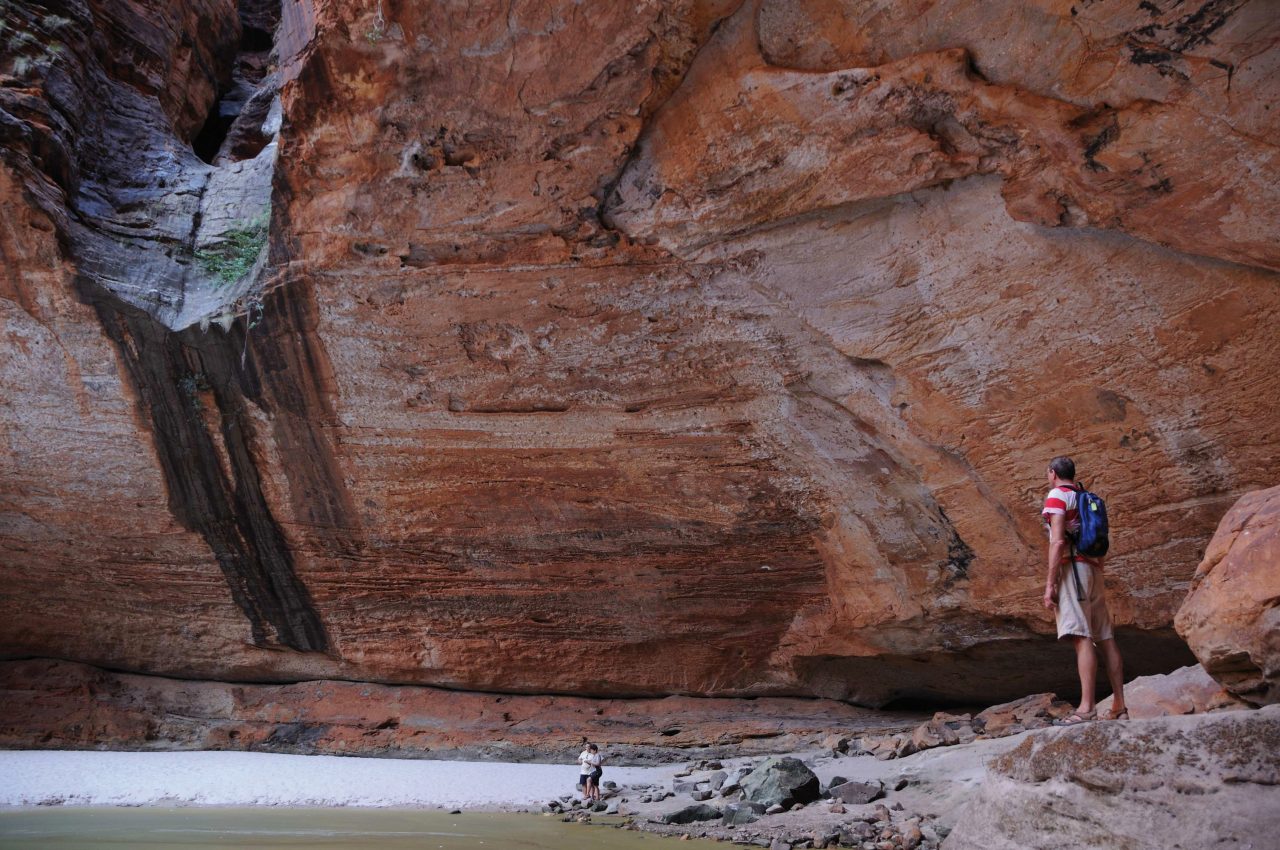 It’s unusually hot for August in far north-west Australia and moisture-sucking air engulfs us when Simon and I step from our hired 4WD at the visitor centre. The on-duty ranger pooh-poohs our plans for an afternoon walk, recommending instead that we rest for the remainder of the day and walk next morning. We won’t be exploring Piccaninny Gorge either, because just getting to the main gorge involves a 7km walk along an exposed – which means hot! – stony creek bed!