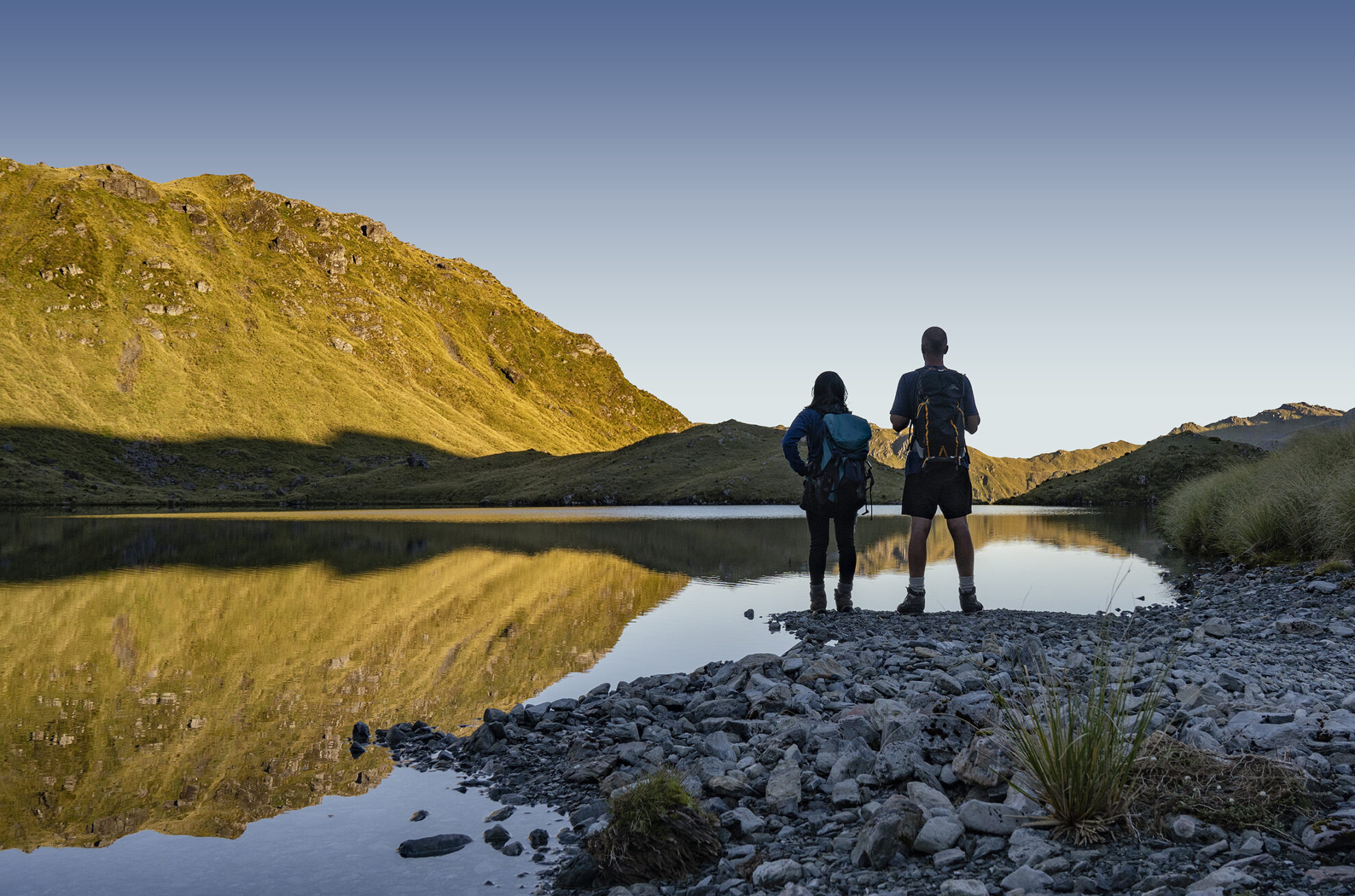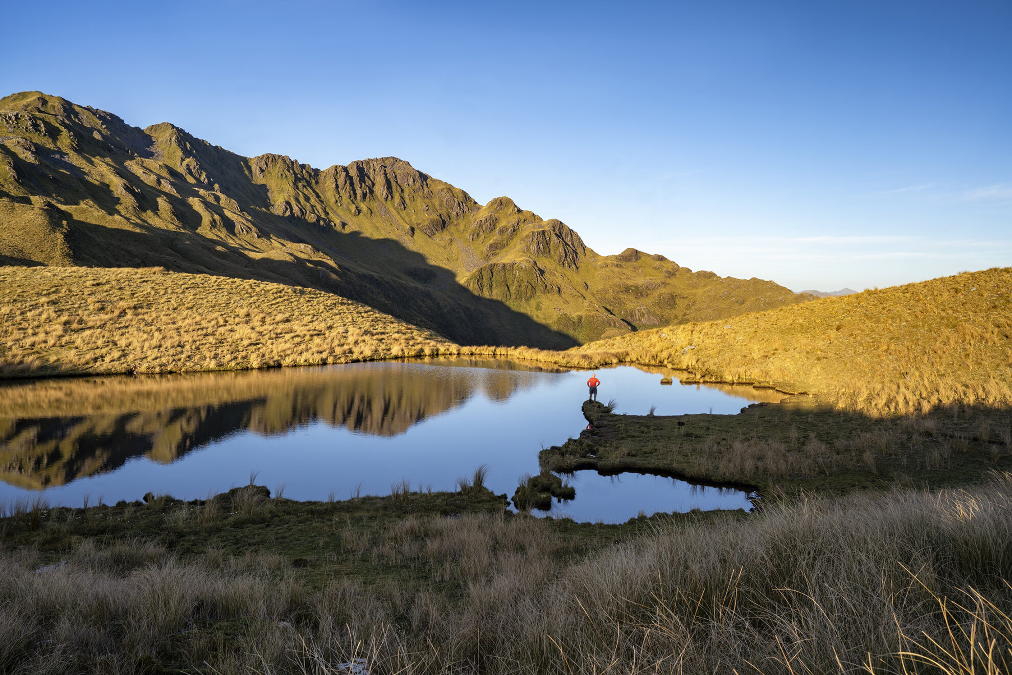 Further up the valley, we are bluffed and need to ford the Haupiri River to where pleasant river terraces make for faster travel. We punch through mixed beech and podocarp to pick up a marked track to the Cone Creek confluence. The thigh-deep crossing required to continue up the Haupiri River to Elizabeth Hut is testing and would be impassable after rain. On the opposite bank, a short trail leads to a tepid spring, not really deep enough to bathe in. Soon after, the track is washed-out and we resort to scrambling around the edge of the water, which sometimes thunders through rapids and at other times flows through deep green pools. We are heaving heavy packs over large boulders; it’s a balancing act in soggy boots, gaiters sagging to half-mast, and energy levels flagging.