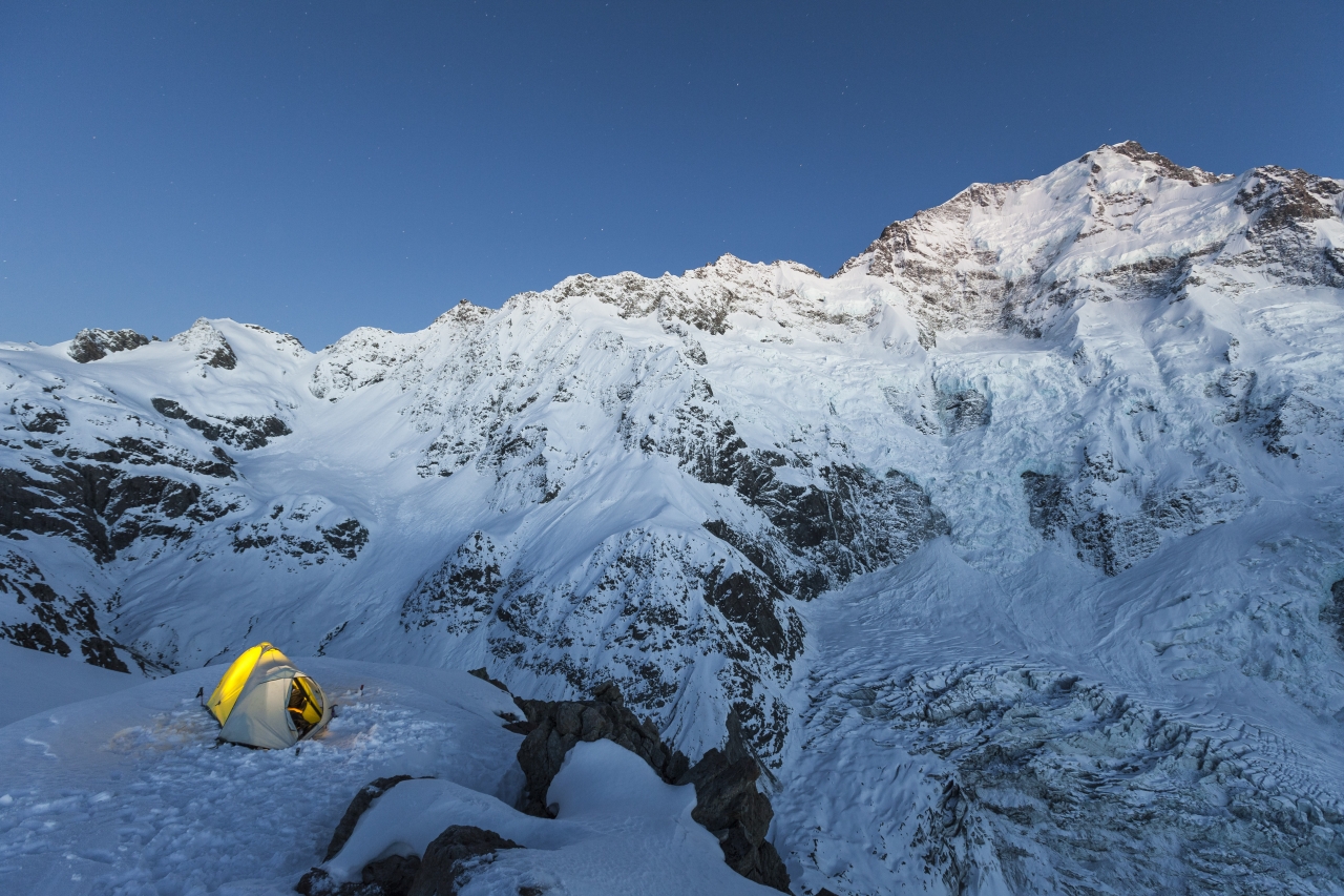 If you have the option of pitching your tent on rock or snow, pick the rock as it will be warmer. Either way, an inflatable (preferably insulated) sleeping mat is the ticket to comfort. Closed cell foam is light and a thin or three-quarter mat can make a useful second layer of insulation. Putting your gaiters, parka, overtrousers and even your pack under your mat can make you cosier in really cold conditions.