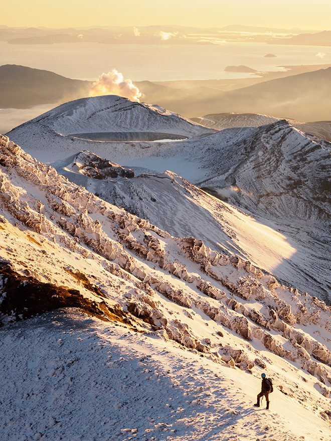 The fresh snow and the crisp wintry air brought a sense of serenity, only to be interrupted by the crunch of my crampons and the hissing sound of the steam fumaroles.