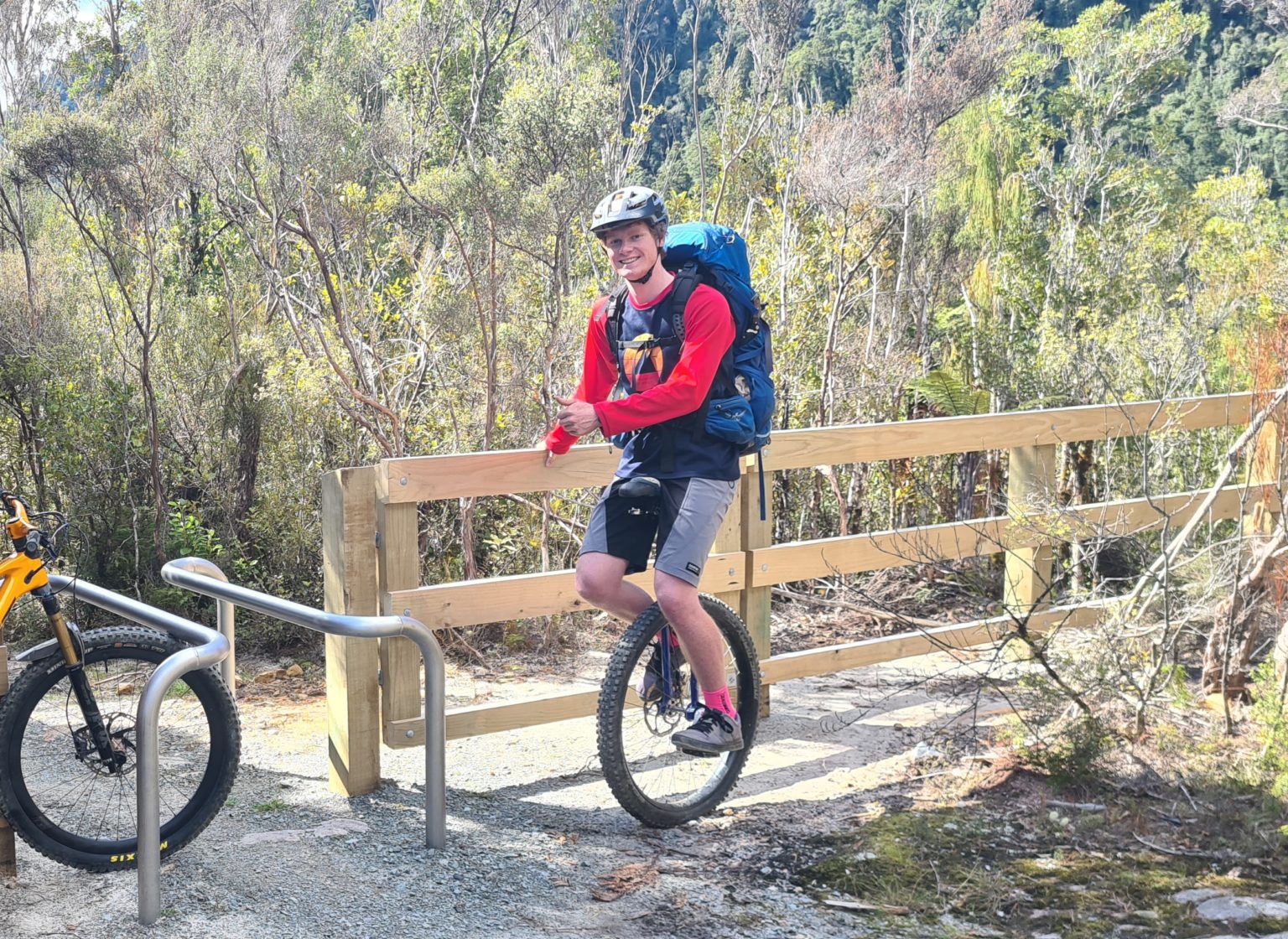 While tramping the Paparoa Track, Tara Papworth met a teenaged unicyclist who believes that wherever two wheels can go, one wheel can too