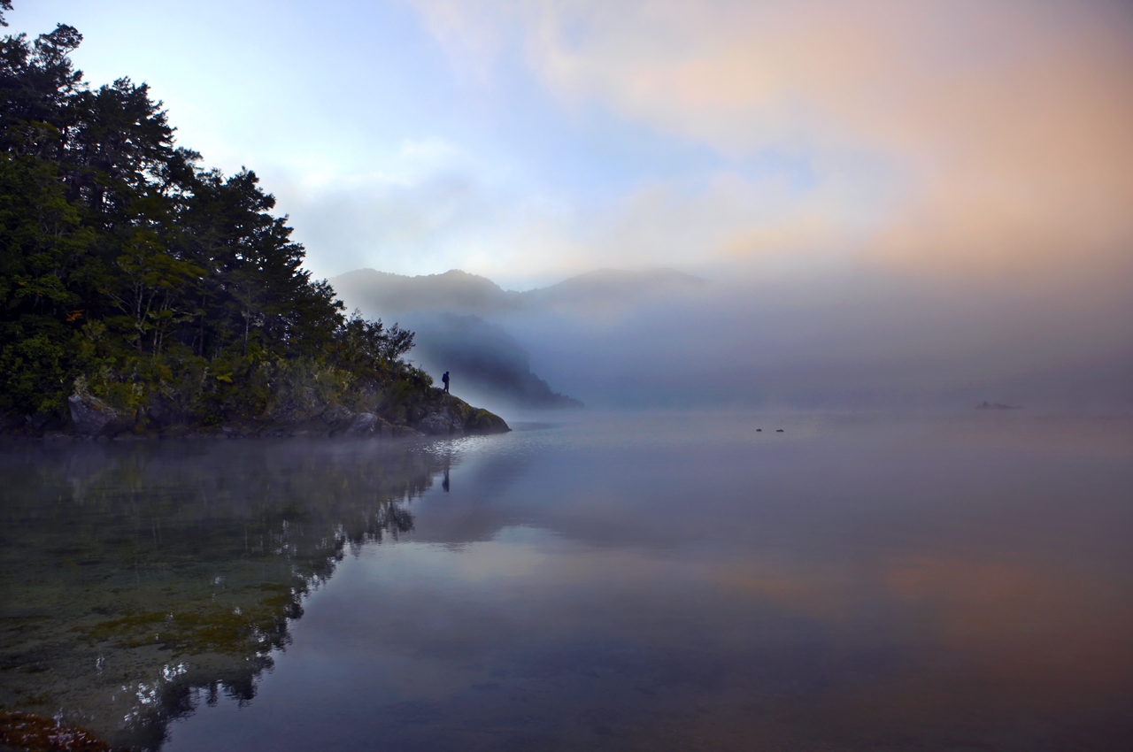 0600 Wake up at dawn at the motor camp at Home Bay, grab a towel and before you can talk yourself out of it sneak out into the chill as the first rays of sun break through the Waikaremoana mist. Morning Swims aren’t too bad this far north – we have clocked some shallow bays at 23°C!