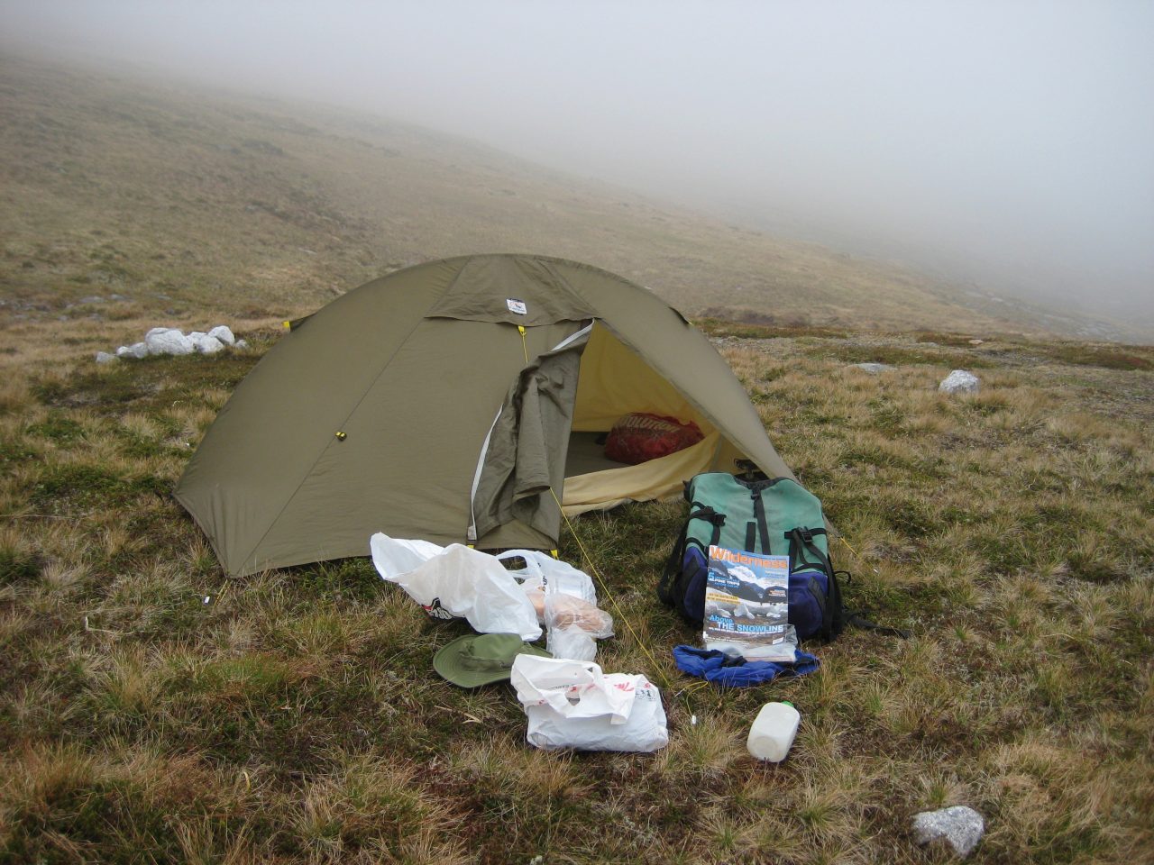 I thought you might like the attached photo that I took yesterday on a misty morning when camping in the Cairngorms in Scotland. You’ll see that I packed all the essentials!