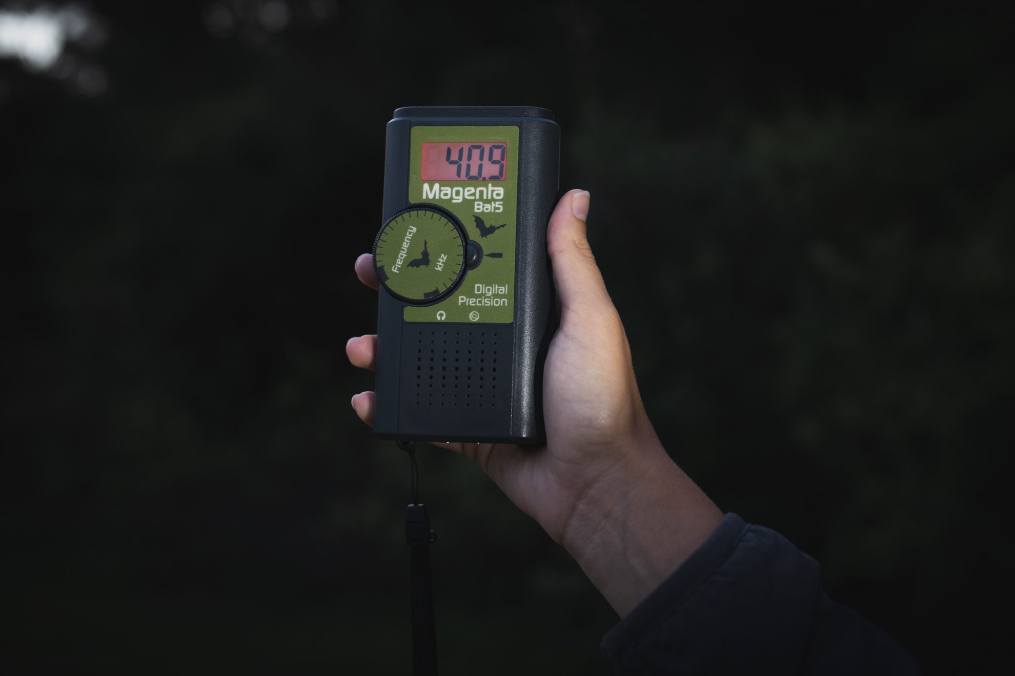 The walkie-talkie shaped devices have a directional range of up to 30m, and convert ultrasonic bat cries into audible frequencies which sound like clicks and zips piercing the static.