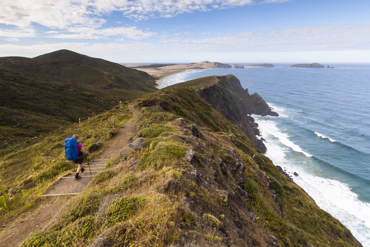 It boasts a warmer climate, a rugged coastline with spectacular views, and requires the same sort of fitness level. While you must be self-sufficient (there are no DOC huts here) you’ll no doubt have company, as this is where most Te Araroa Trail walkers begin their long journey south.