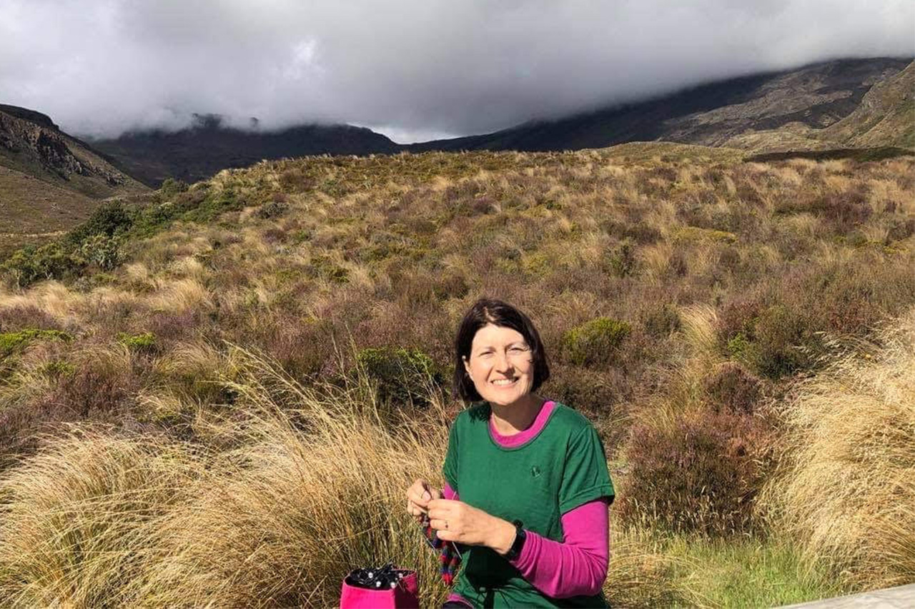 The 54-year-old Dannevirke resident, who resumed tramping with friends five years ago, has been knitting her own colourful tramping socks.