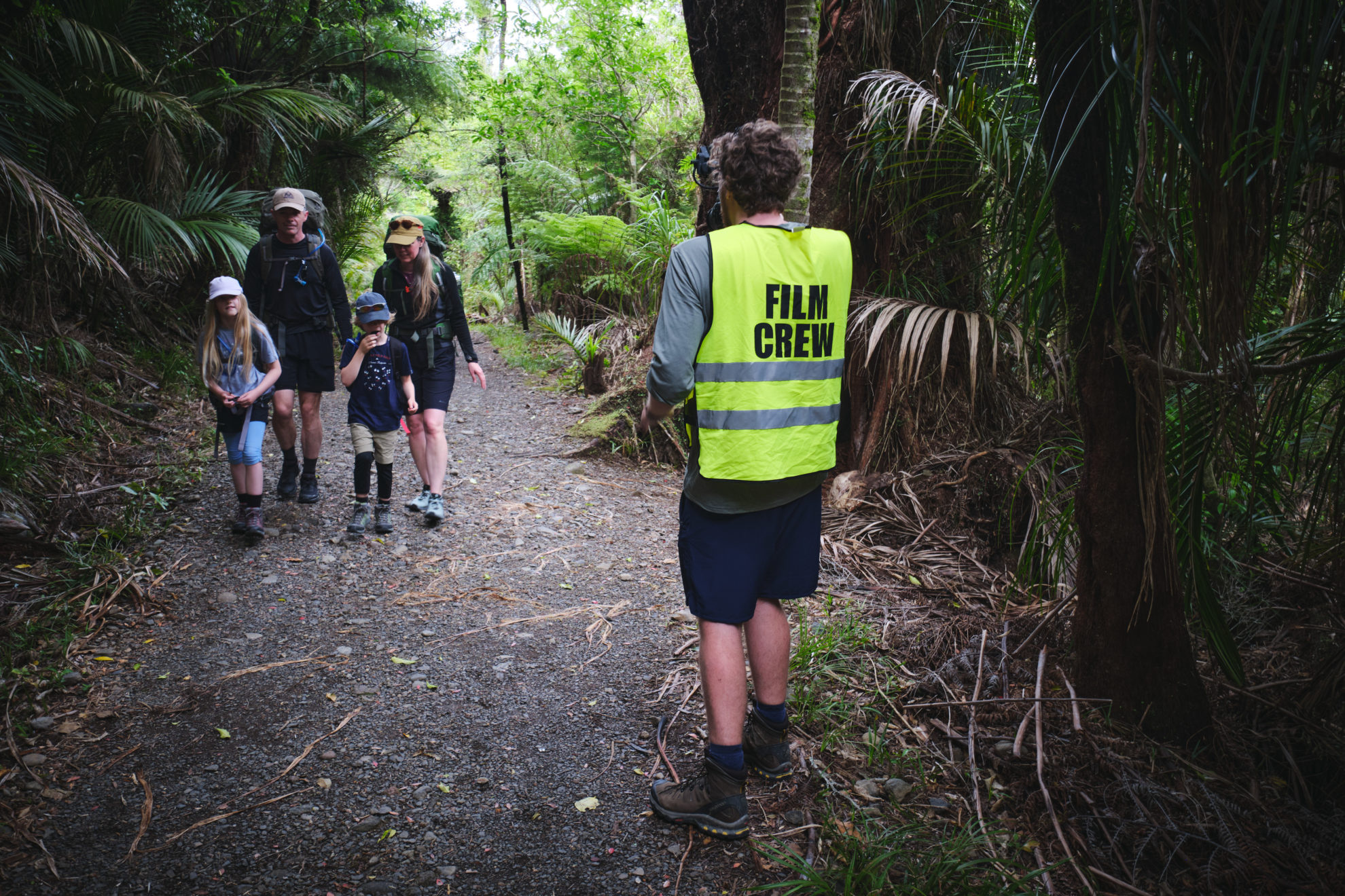 As the film crew unloads into the Kauaeranga Valley car park, I’m relieved to be carrying a half-full day pack. I’m used to hauling a lot of camera gear, but nothing like this.