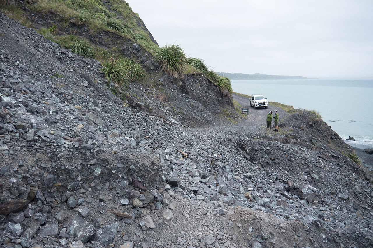 The Wild Coast Track between Wairarapa’s Ocean Beach and Wainuiomata Coast Road was closed in February due to a large landslip 1.5km west of Corner Creek campsite.