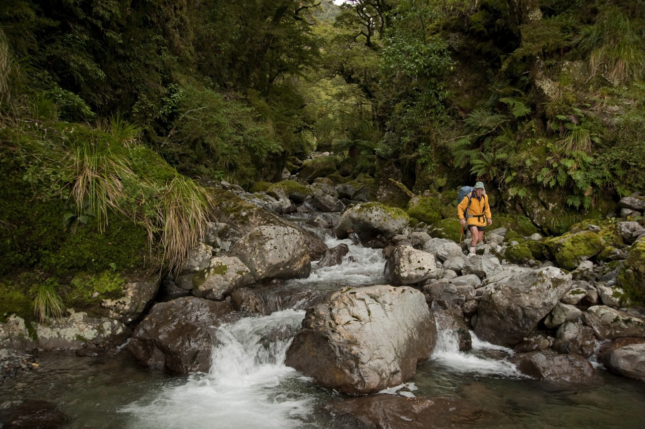 After a few hours of this rough, bouldery travel, we reach the swingbridge, signalling we’ve intercepted the Atiwhakatu Track. With one step we cross the boundary from wilderness to trail. Recently I’ve been reading a book called Teewinot, by American climber Jack Turner. He calls this crossing a ‘mental border… the border between lost and found, not knowing and knowing, nonhuman and human, wild and tame, hard and easy, dangerous and safe, deciding and merely following. The mind goes limp, the body slackens.’