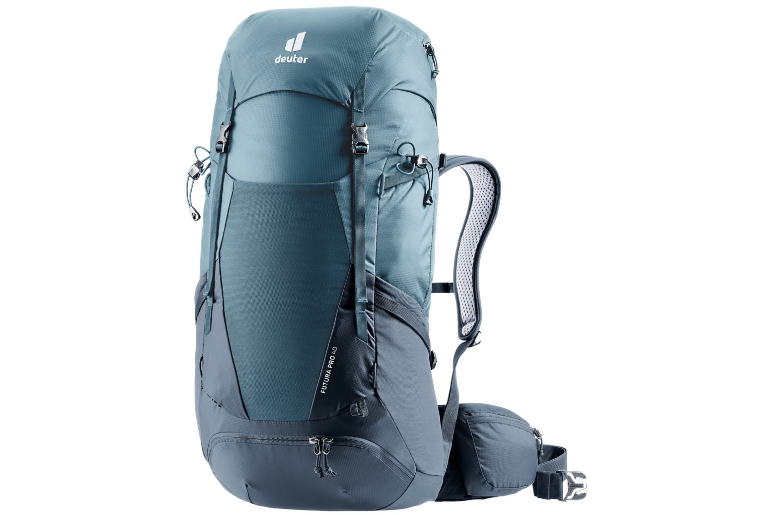 The Futura Pro is a durable and practical overnighter featuring Deuter’s Aircomfort Sensic Pro harness with a trampoline-style back panel and plush VariFlex ECL hip belt. It’s made from tough 600D polyester and 210D nylon and includes dual compartments, large bellows side pockets with zips, lid and small waistbelt pockets and single ice axe and trekking pole attachments. Other features include 3l hydration bladder compatibility, a rain cover and attachment loops for a separate helmet holder.