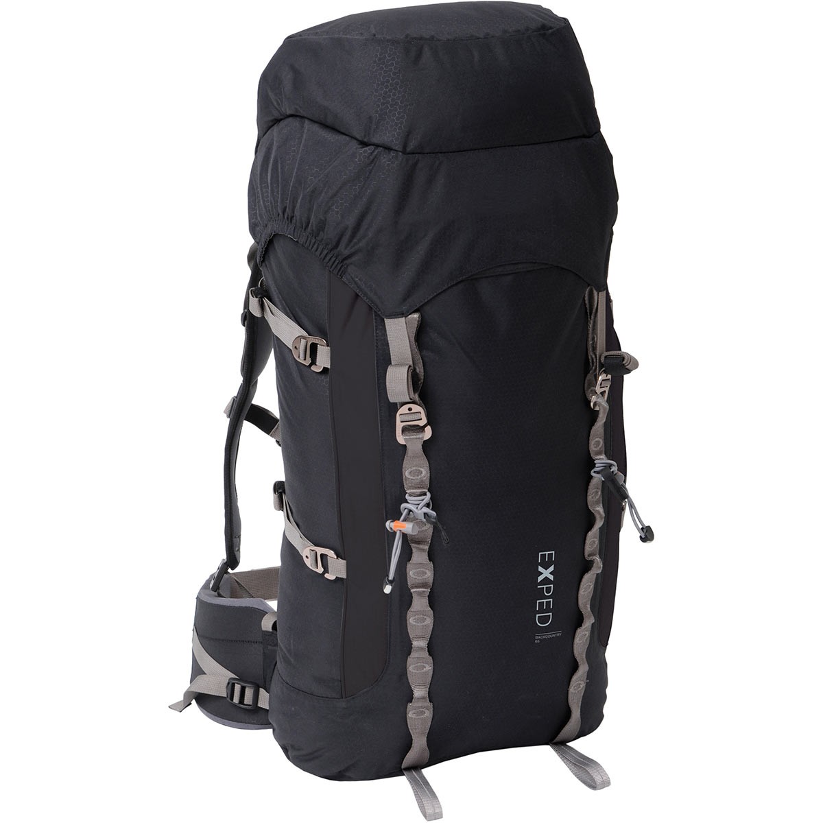 Exped has taken a dry-bag approach to the Backcountry; all seams are firmly sealed with bonded tape and its four zips are all the waterproofed variety. A roll-top closure, capped by a conventional lid seals the deal and offers a fairly bombproof pack that might be ideal for tramping in the wettest places. Seam-taping has the benefit of adding considerable strength and protection to stitching.