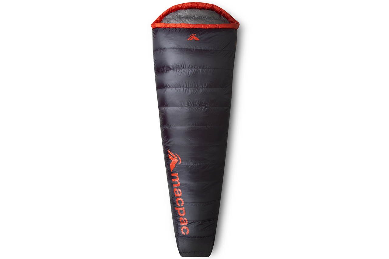 Features: This is a minimal ultralight mummy bag with no zip and a basic hood. It’s made with light 15 denier Pertex Quantum fabric and Macpac’s water-resistant down.