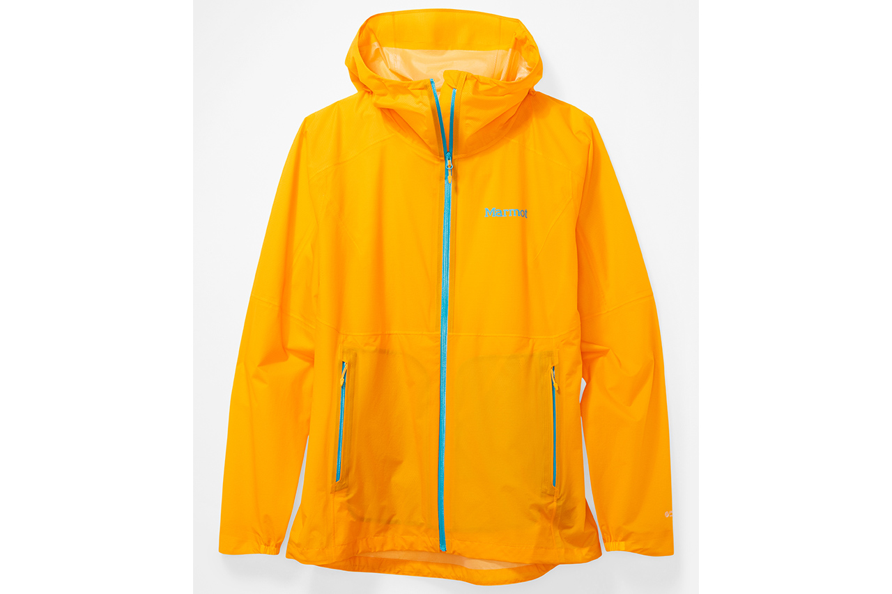 In use: I used this jacket on a rainy day trip with a moderate day pack and on a three-hour bike ride. When walking in light rain, with a Polartec Power Grid base layer underneath, the fabric stood up to its claim of extreme breathability. It also kept the water out, while the hood cinched firmly around my head. But in prolonged moderate rain, I discovered this jacket’s Achilles heel: the armpits have been perforated to improve breathability, but this also lets in rain and in this instance enough to leave me with two long saturated stripes down the front of my base layer. My pack straps may have enabled water to flow more closely to the armpits, but jacket design should allow pack use in mind.