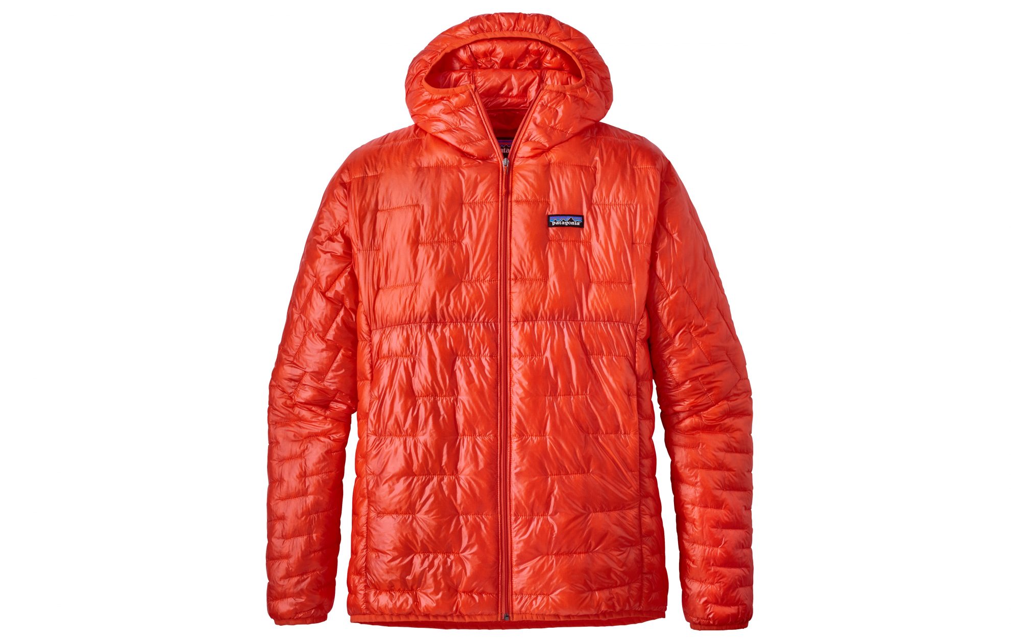 To make a jacket that weighs as little as a cup of water (264g -m; 227g -w), Patagonia went back to the basics. The features include a fitted hood, a lightweight zipper, two zippered hand pockets that double as stuff sacks, and two internal stash pockets.