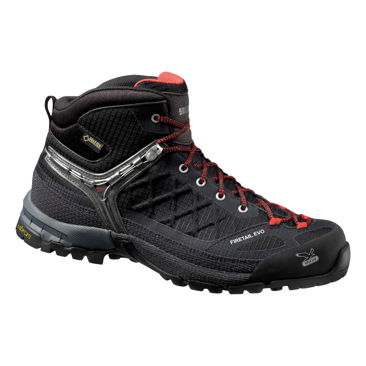 Salewa’s 3F heel lock/ankle support system transfers tension to the arch and heel when the laces are tightened, but it doesn’t actually move and nor is it very tight, so most of the increased support in the ankle area comes from the plastic reinforcing alone.
