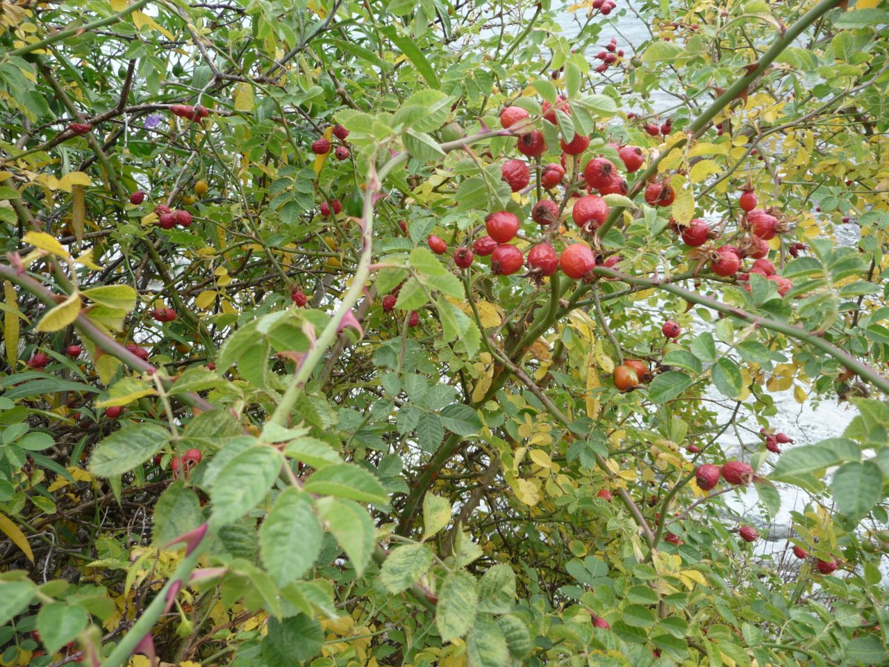 Description: Small thorny shrubs growing between 1-3m tall, flowers are white to pink about 5cm in diameter with yellow centres and multiple stamen. They bloom in the spring, and turn to bright red seed pods in the autumn. Season: Flowers form in the spring with the hips forming in late summer, early autumn and staying […]