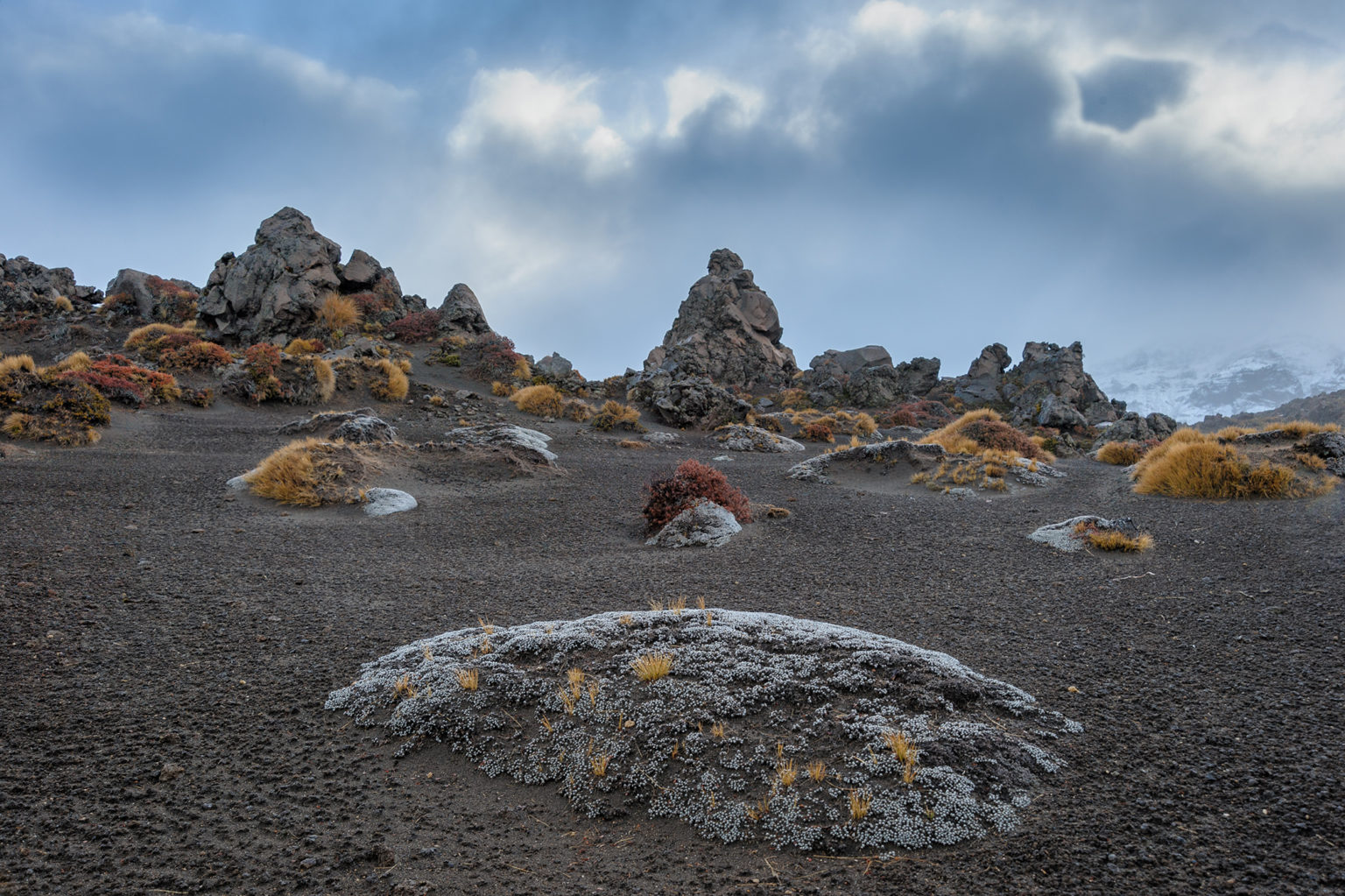 Tongariro’s Ōturere Valley is a surreal volcanic landscape where pillars of lava line the track like sentinels and at the high altitude, only sparse vegetation can survive – including cushion plants. Ōturere Hut forms part of the 3–4 day Tongariro Northern Circuit.