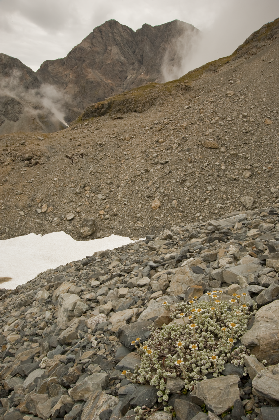 Some of the more accessible places to see South Island edelweiss are the mountains of Arthur’s Pass National Park, notably the enjoyable stroll up the upper Otira Valley, which begins near the summit of Arthur’s Pass itself. A good track leads into the valley, until a footbridge across the infant Otira River. Form here, a route wanders up the bouldery confines of the upper valley, beneath Mt Philistine and the Otira face of Mt Rolleston. Such scenes show the remarkable ability of alpine plants to survive in a tough mountain environment.