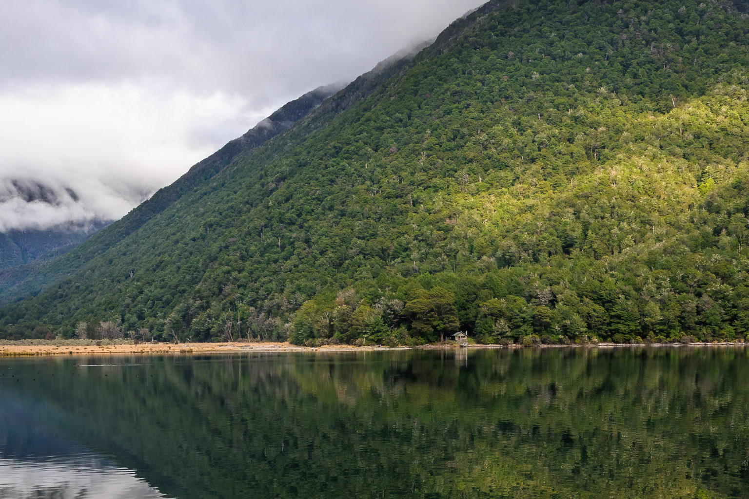 Green Lake Hut (12 bunks), built by DOC in 2008, sits in a sunny position above the lake. It’s reached either on the 3–4hr track from the Borland Road, or by traversing the tops from Borland Saddle. Both routes can be combined to form a satisfying weekend tramp.