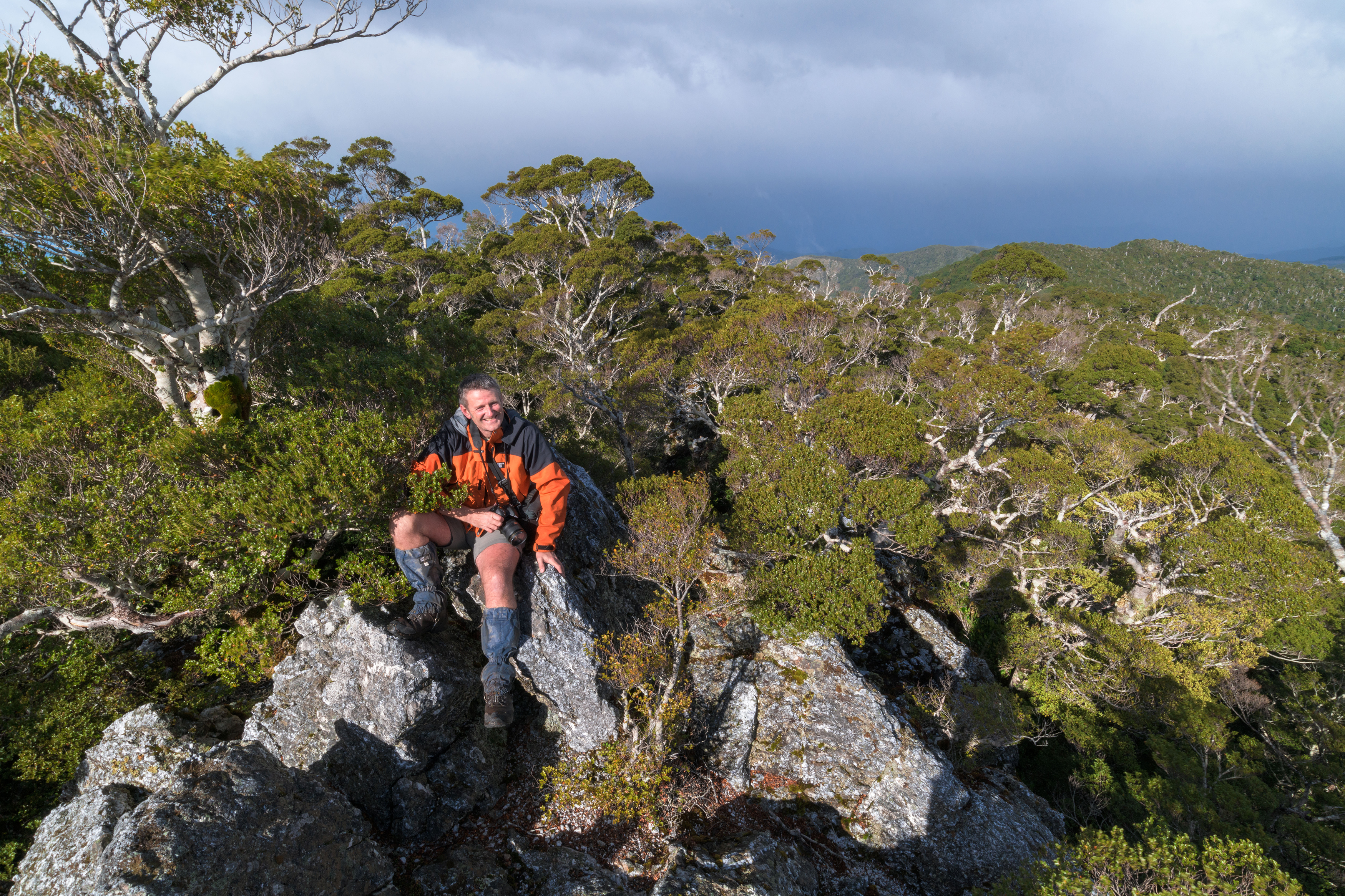 Mt Evans, the highest summit in Abel Tasman National Park is situated on the Pikikiruna Range, high above the moor-like Canaan Downs. While the track to the summit is no longer maintained, a marked route, beginning from near Moa Park Shelter, is still easy to follow. It climbs gently through forest onto the striking summit rocks, composed of granite with quartz.
