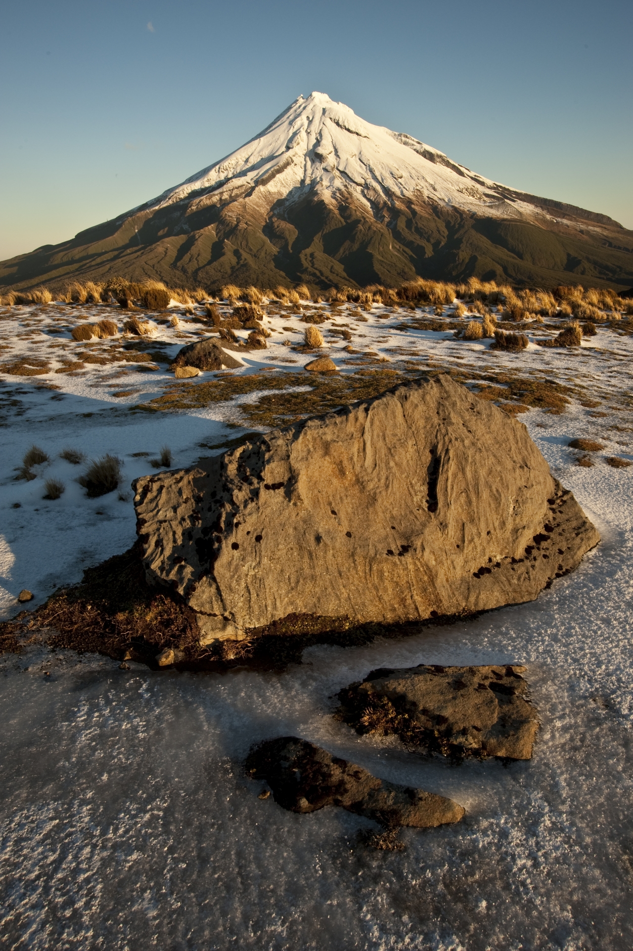 Although a worthy trip in itself, the Round-the-Mountain that circumnavigates Mt Taranaki rarely has enough distance to render the summit at a pleasing angle. Too often, the track offers a somewhat warped perspective through bluffs, or the mountaintop is simply not visible at all.