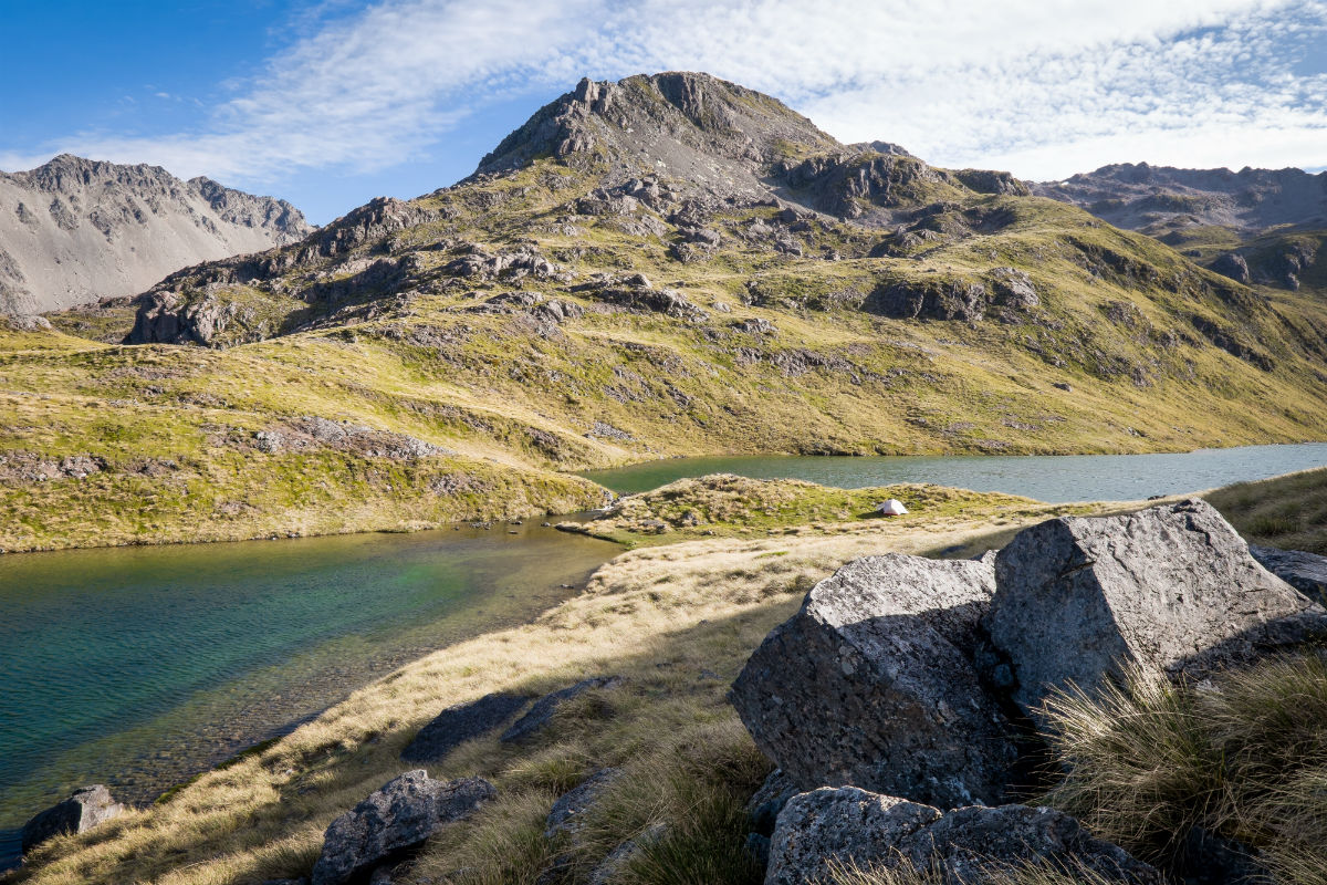 The route along Robert Ridge to Lake Angelus Hut is one of the busiest tramping highways in the country. My partner and I were drawn by the amazing views over Nelson Lakes National Park but were apprehensive of the impending hubbub. As it turned out, the route offered lots of solitary camping opportunities even in high season. All it needed was a little planning and basic route finding skills.