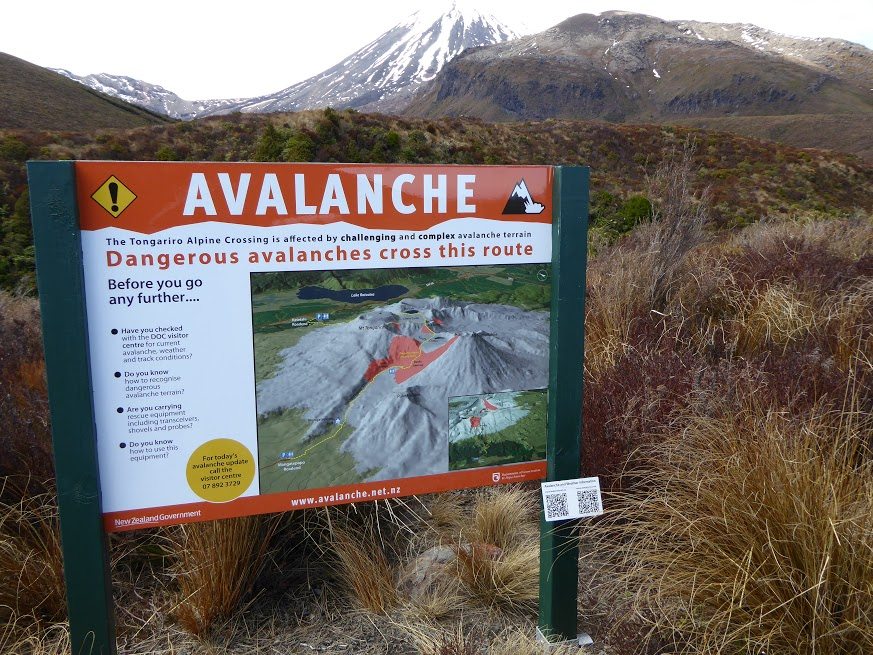 There is possibly a fine line between signs being useful and necessary to promote safety and those which could be classified as visual pollution. The Tongariro Alpine Crossing springs to mind with the latter.